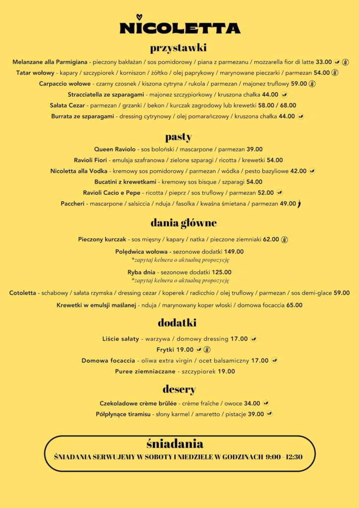 Śniadania serwujemy w Soboty i Niedziele w godzinach 9:00-12:30.